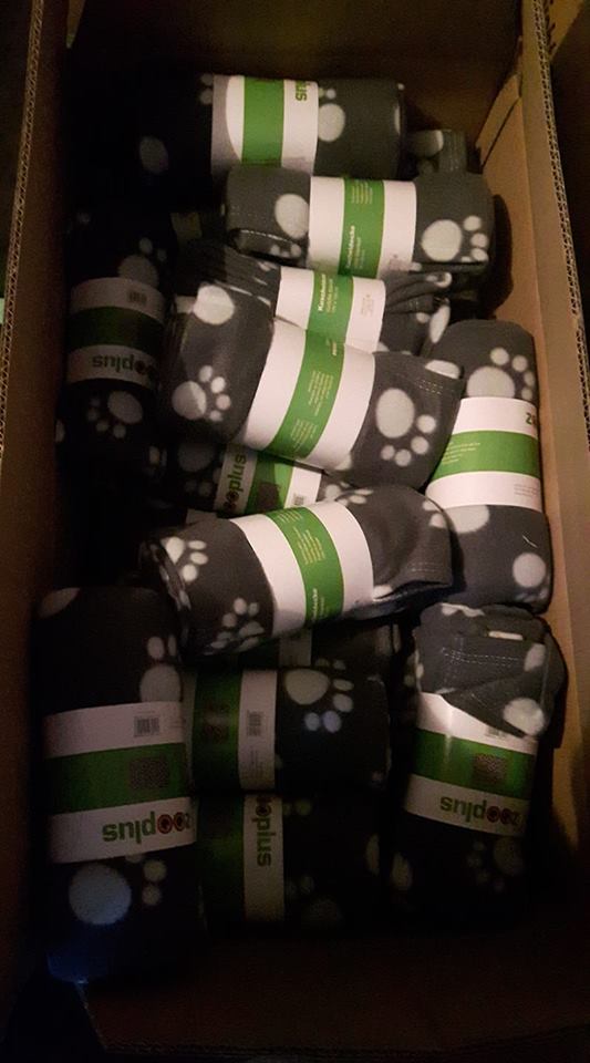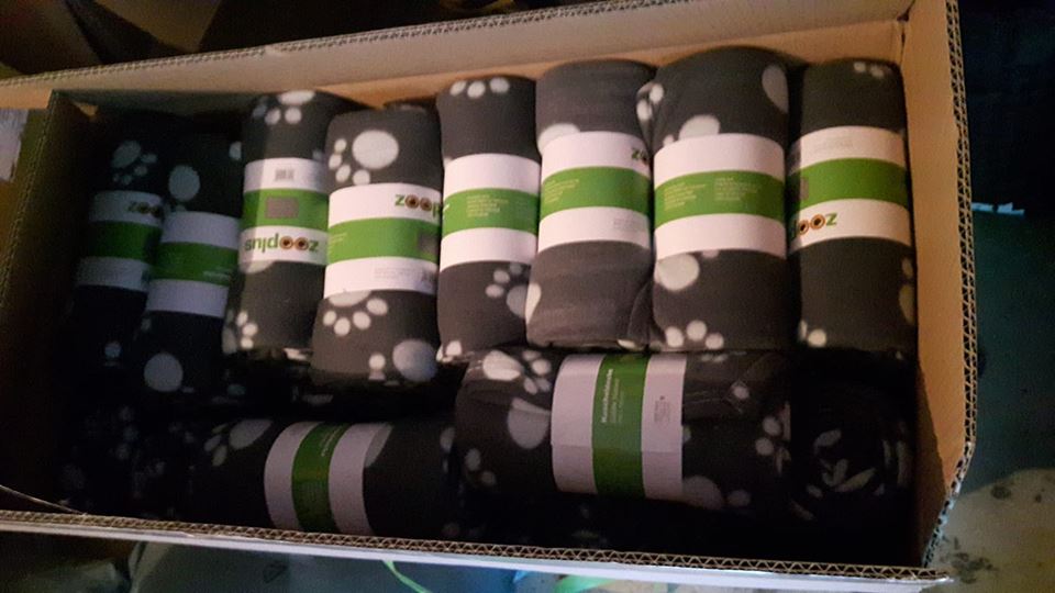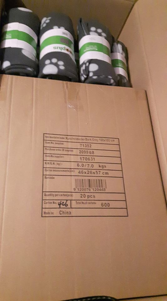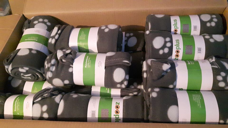 Einige Diskussionen mit Zooplus waren nötig, aber letztlich haben wir 179 Fleecedecken zum Preis von 99 Cent pro Stück erhalten 👍 . Diese gehen nun etwas verspätet am 24. Februar mit nach Italien und werden dort dank Euch bei den Vierbeinern für warme Zeiten sorgen